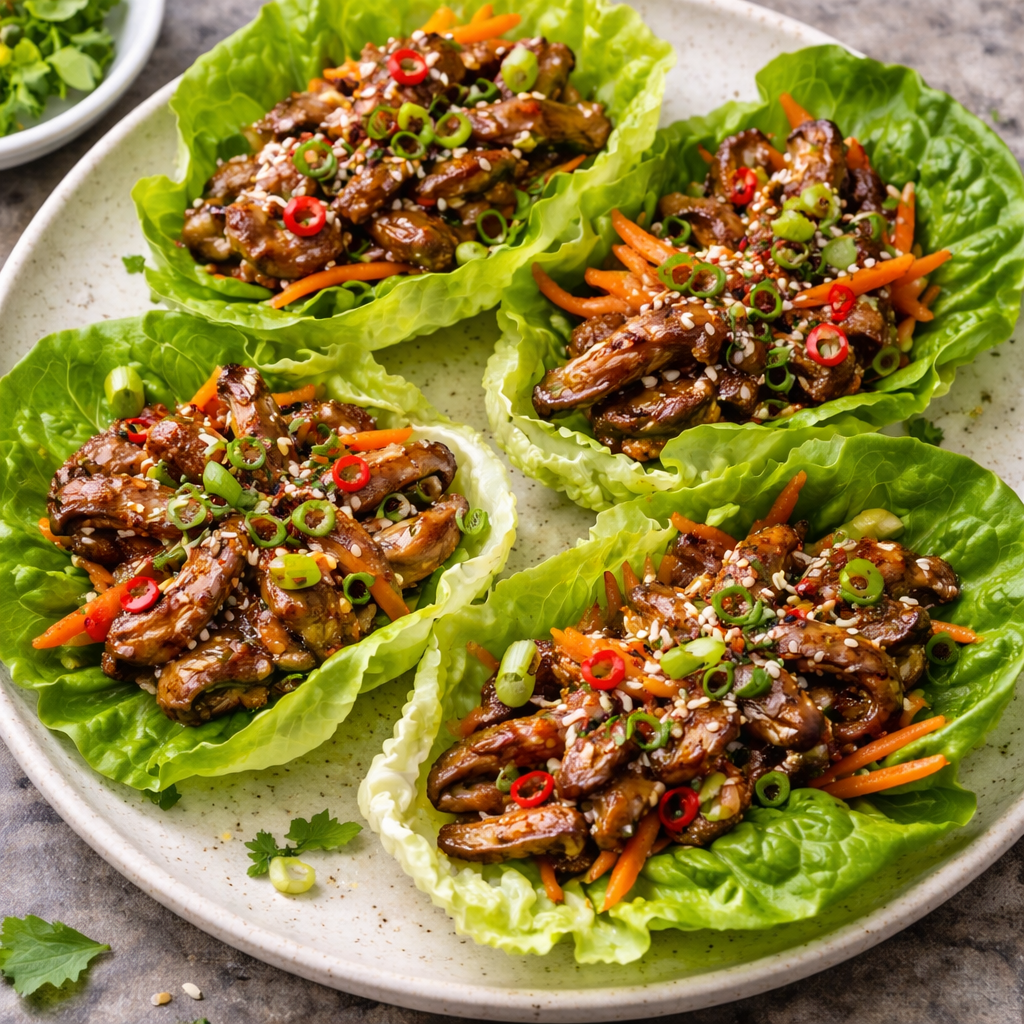 Sticky Soy Oyster Mushroom Lettuce Wraps