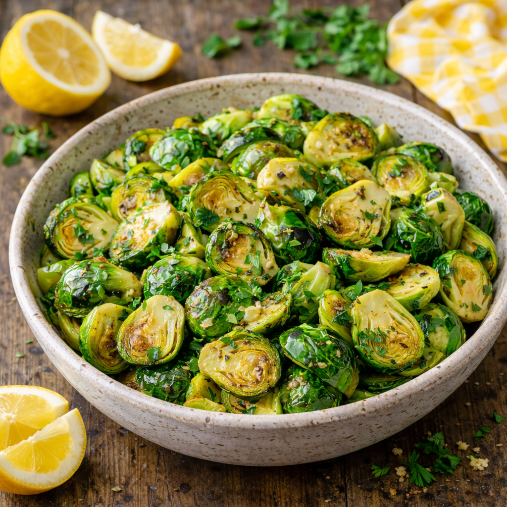 Duration: 25 minutesRoasted sprouts with lemony Parmesan crust.