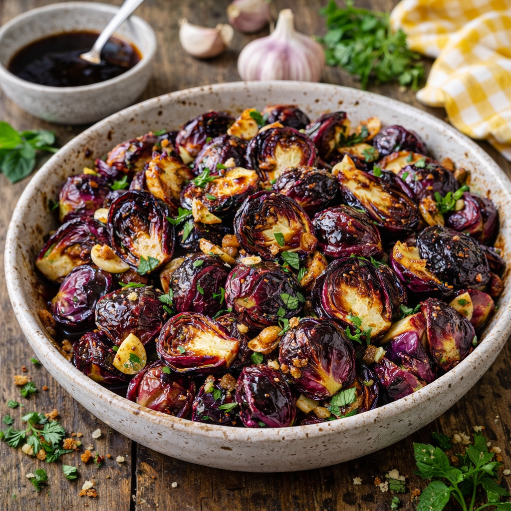 Garlicky Roasted Red Sprouts with Balsamic